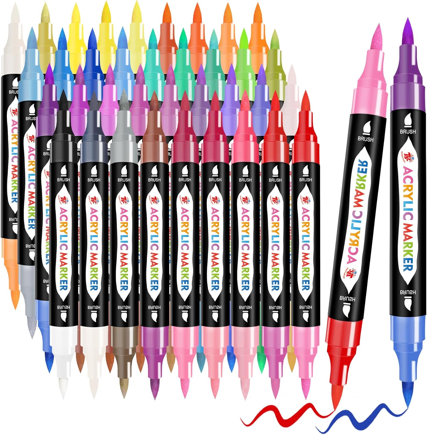 TBC-Rotulador de pintura acrílica de doble punta, bolsa de lona de grado superior con doble cremallera, impermeable, no tóxico, inodoro, 48 colores